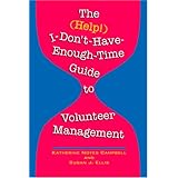 (More customer reviews)Most people who work with volunteers have no training in doing so (they've never taken a workshop or class on volunteer management), and recruiting and supporting volunteers is rarely their only responsibility (they may also be marketing managers, program directors, or even the President of the organization). The (Help!) I-Don't-Have-Enough-Time Guide to Volunteer Management gets these folks up to speed *immediately* on what needs to be in place to successfully involve and support volunteers. It was written long before the Internet became the essential tool that it is now, and even so, everything it talks about is instantly adaptable to online environments. This is the first book I recommend to anyone who is setting up a volunteer program, or wants to get a floundering program back on track.